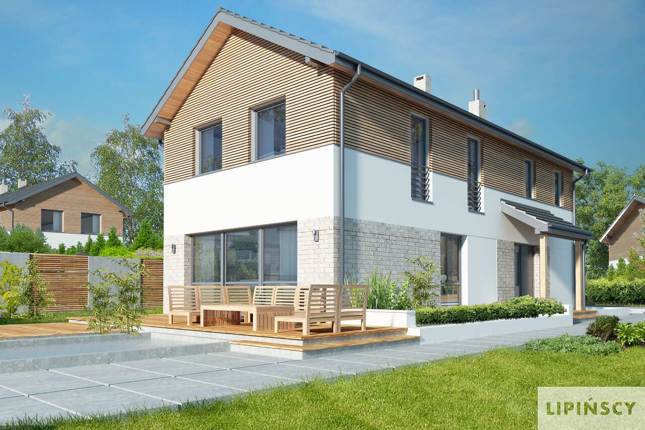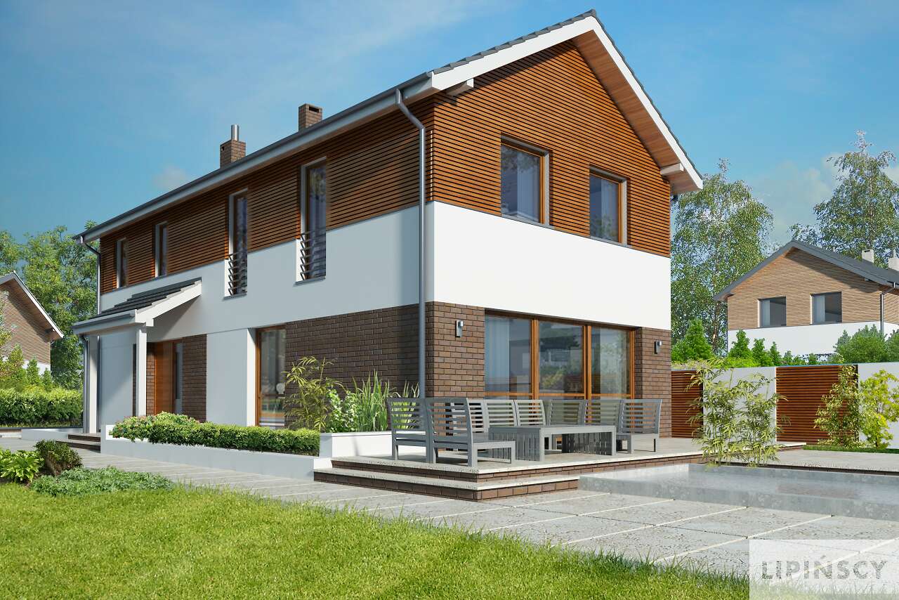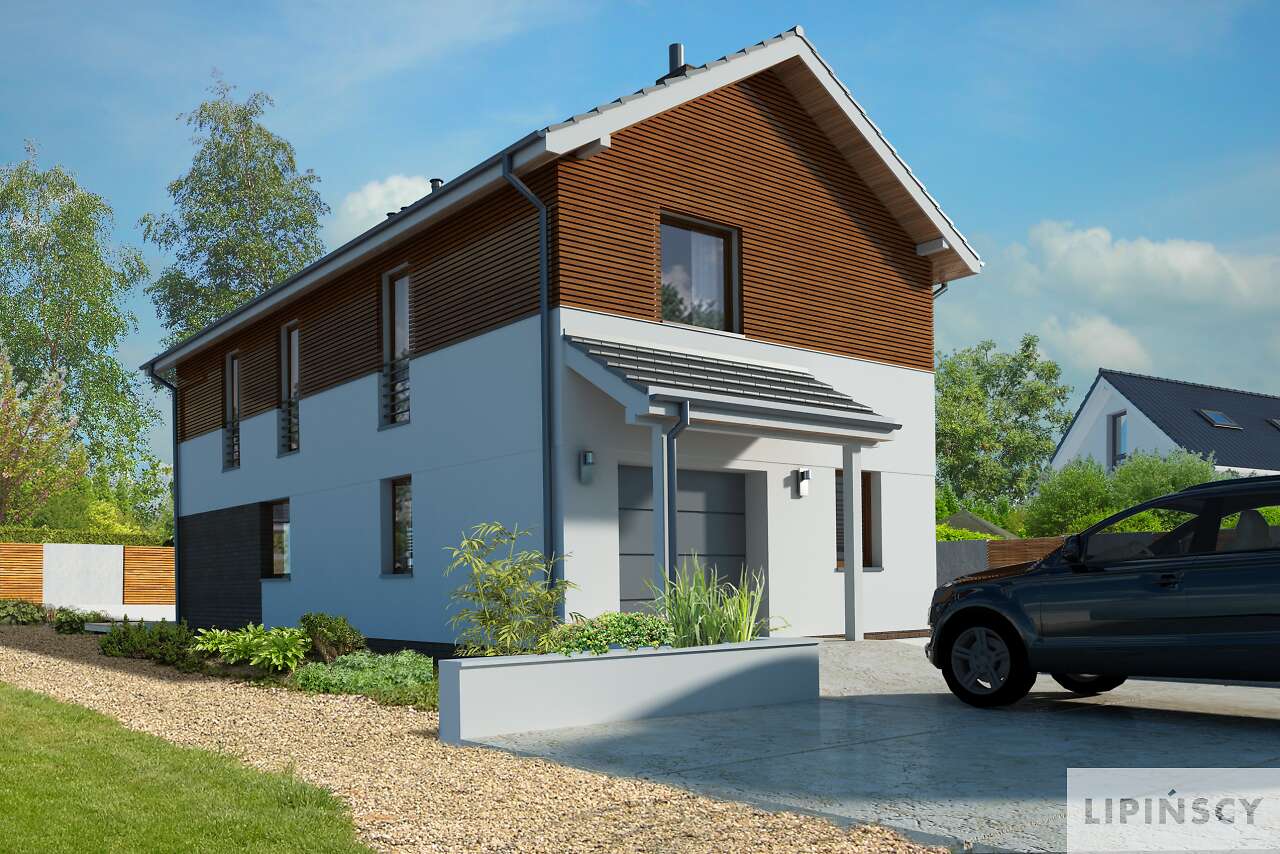Ten dom został zaprojektowany właśnie z myślą o bardzo wąskich działkach. Ścianę bez okien można dosunąć na 1,5m.