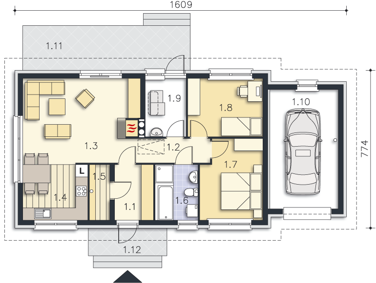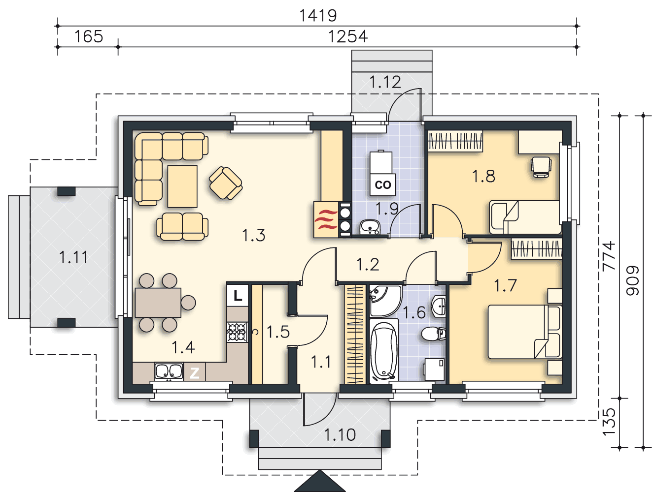 Z zadaszonego tarasu można oczywiście zrezygnować.