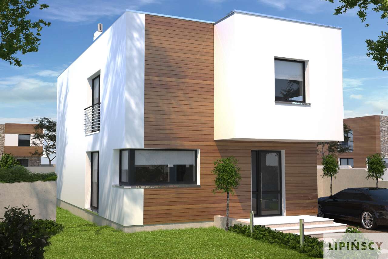 Genialnie wygląda elewacja z ciemnym drewnem i białym tynkiem - projekt jest u nas na pierwszym miejscu!!!