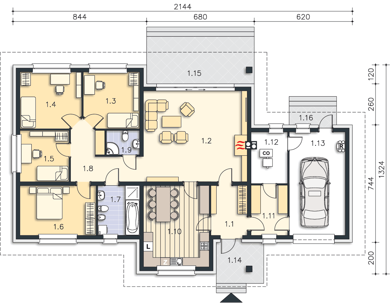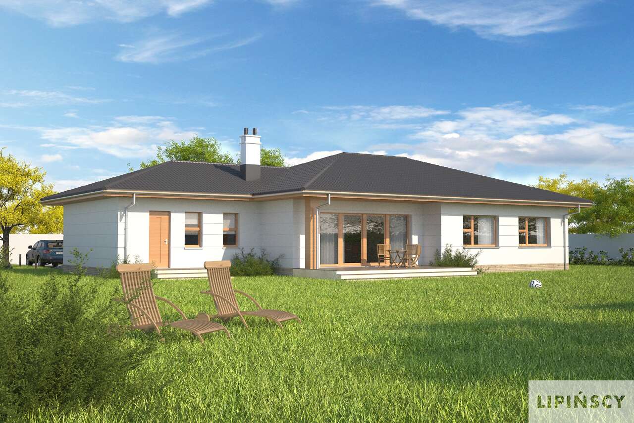 Jeden z lepszych projektów domów parterowych jakie widziałam! Wydzielona strefa dzienna sprawia wrażenie bardzo przestrzennej.