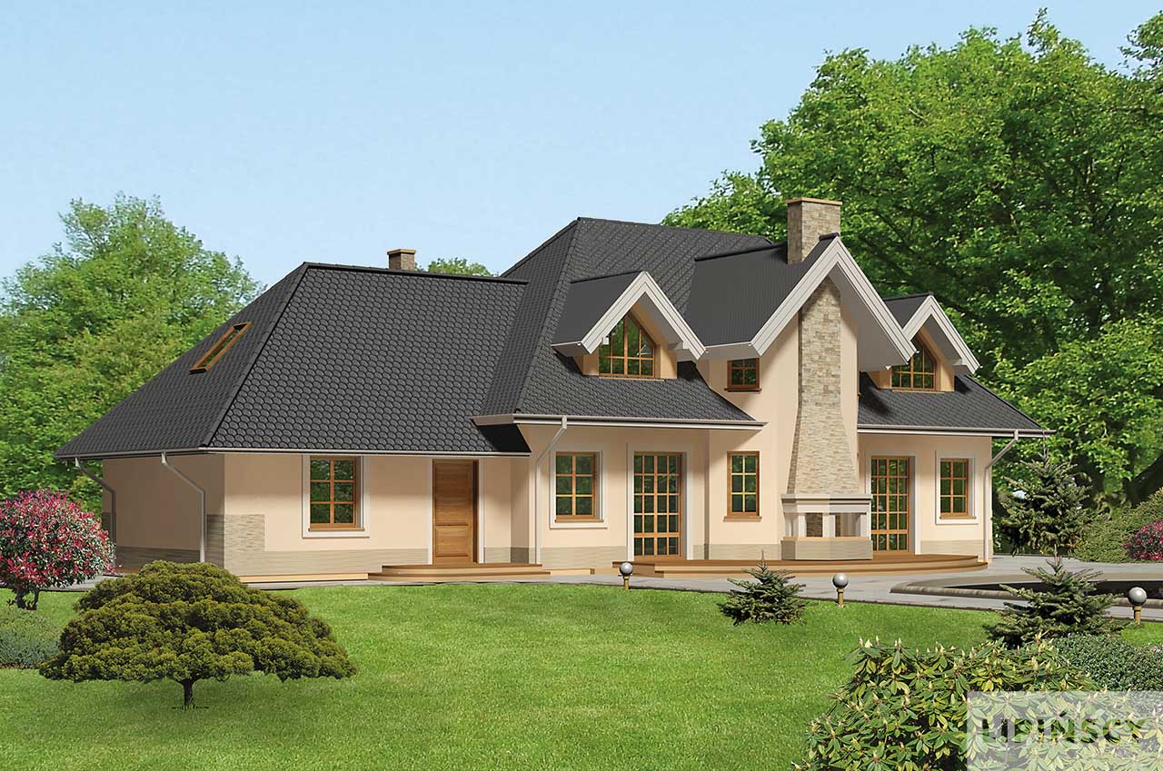 Projekt niczym z marzeń i jeszcze pozytywne zaskoczenie kominkiem i oranżerią. Dom jak z bajki..