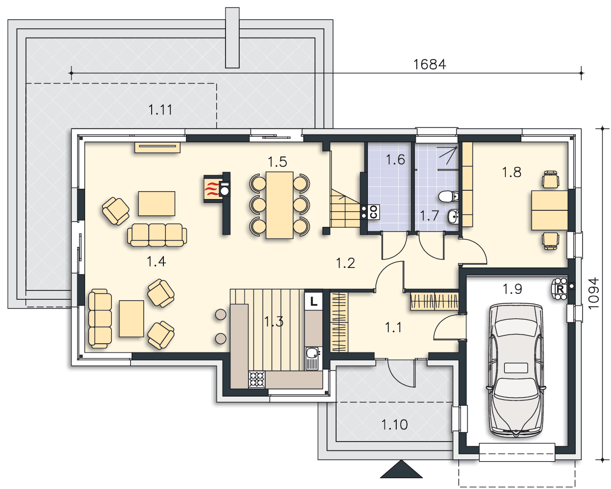 Można zlikwidować garaż i powiększyć wiatrołap.