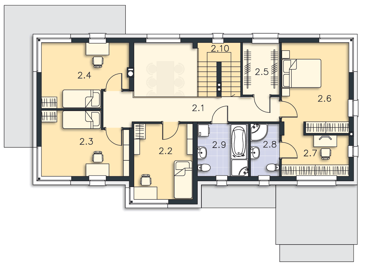 Uwielbiam nowoczesne projekty, ten też robi wrażenie, ale bym zrobiła trochę zmian na piętrze: np. zamiast garderoby w pomieszczeniu 2.5 zrobiłabym łazienkę dla dużej sypialni i połączyła pomieszczenia 2.8 i 2.9 w jeden duży salon kąpielowy. Czy to możliwe?
