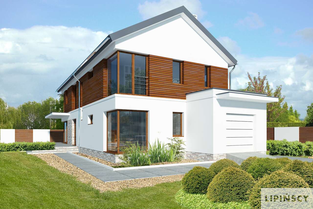 Mamy wersję z dachem spadzistym, z jednostanowiskowym garażem - Imperia 2.