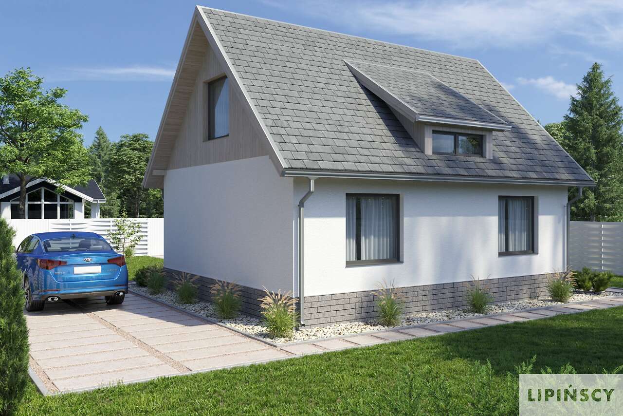 Buduję taki domek. Będzie to domek całoroczny ale w użytkowaniu jako weekendowy. Podniosłem w nim ściankę kolankową przez co domek stał się wyższy ale za to powierzchnia pokoi na poddaszu się zwiększyła. Dzieki temu również odpadły lukarny w dachu. Zamiast nich są okna dachowe. I zamiast garderoby na poddaszu też będzie łazienka. Koszt budowy do stanu surowego zamkniętego to 118 000 zł