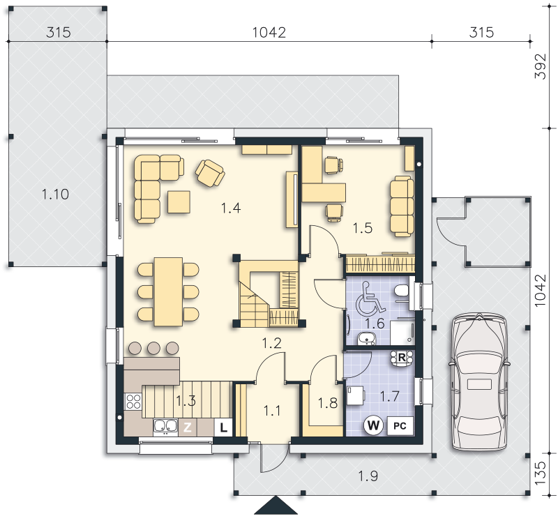 Można doprojektować garaż w ramach adaptacji lub u nas w biurze odpłatnie. Szczegóły: biuro@lipinscy.pl