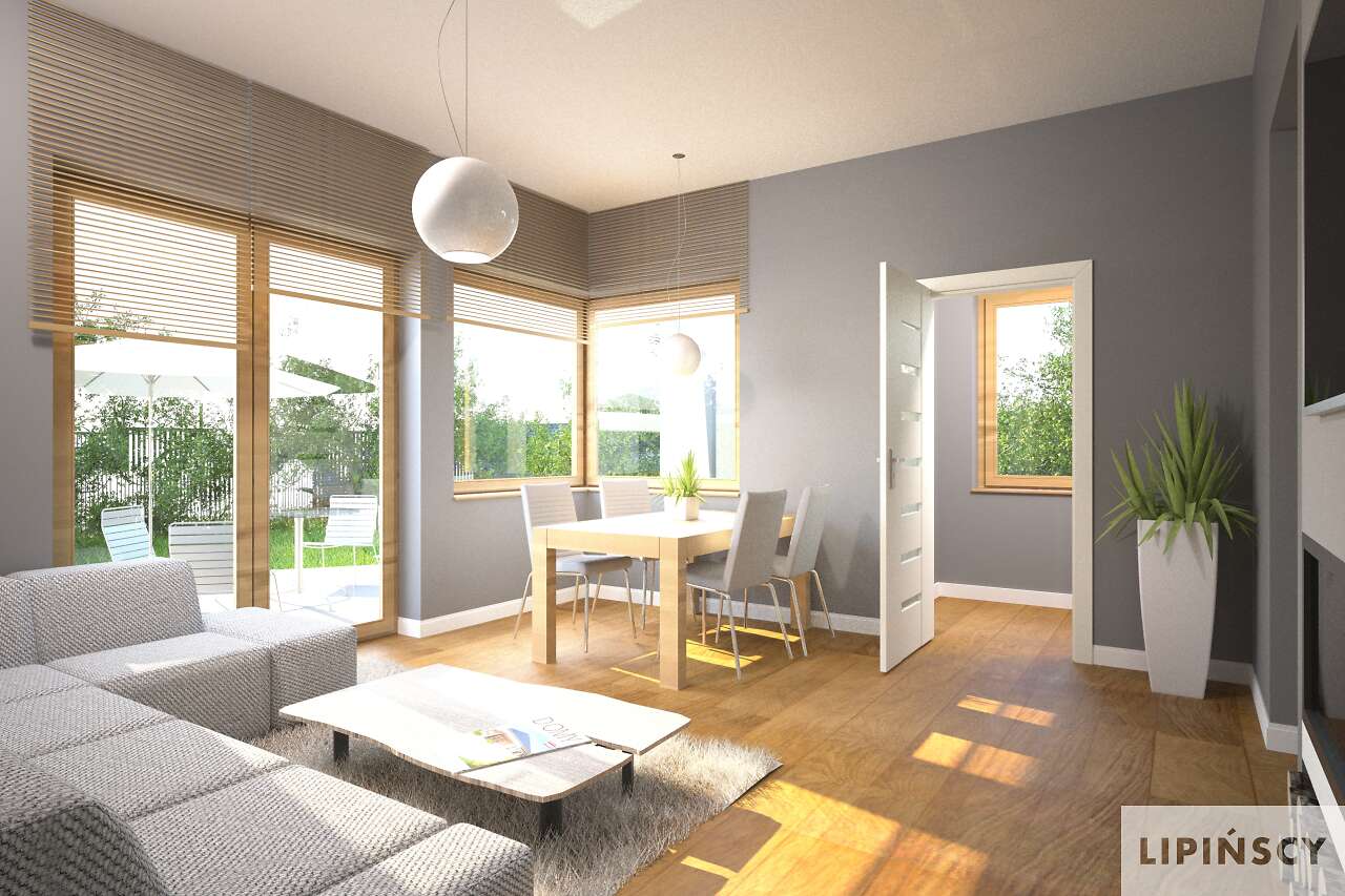 Taka wersja może byc ciekawa, jako dom jednorodzinny dwulokalowy. Można by też zrobić pomiędzy kuchniami jedno pomieszczenie gospodarcze z piecem i wyjściem na zewnątrz z drugiej strony. Możemy przygotować taką wersję na zamówienie, tylko prosimy o kontakt mailowy biuro@lipinscy.pl