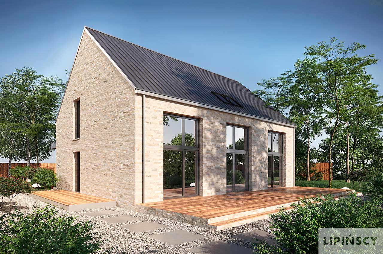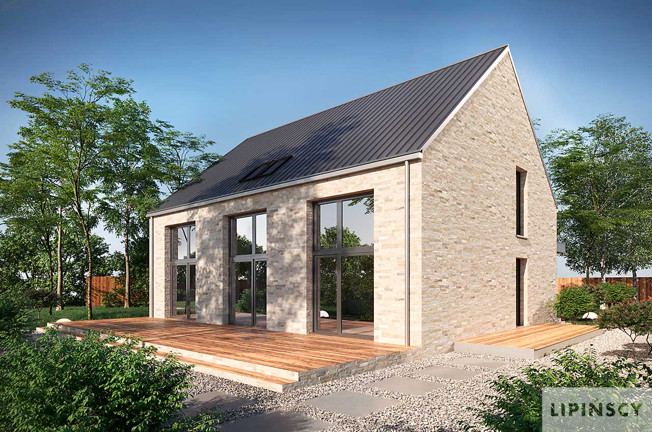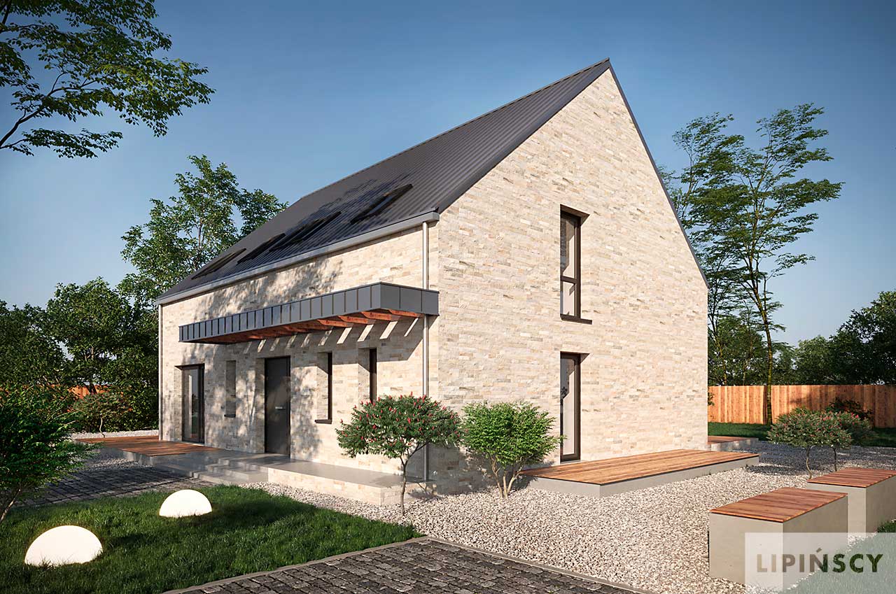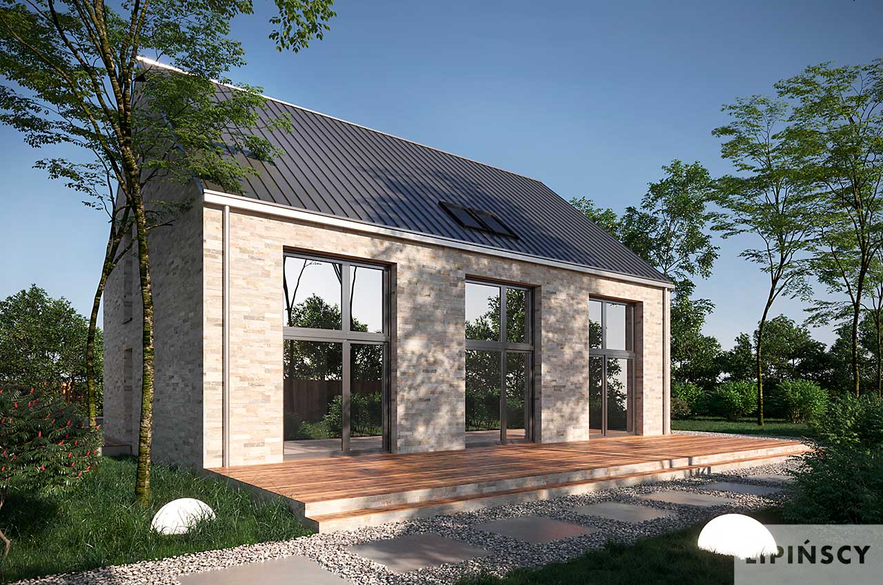 Nie posiadamy wersji projektu bez garażu, ale w ramach adaptacji można z niego zrezygnować. Sam dom ma 13,5 m szerokości więc minimalne wymiary działki zakładając, że musimy odsunąć się po 4 m po bokach, z przodu 5 m (ta odległość zależy jednak od zapisów w warunkach zabudowy), musiałaby mieć 21,5 m na 21 m.