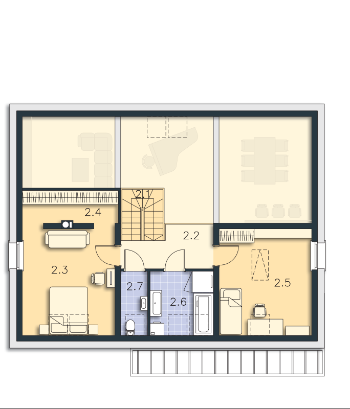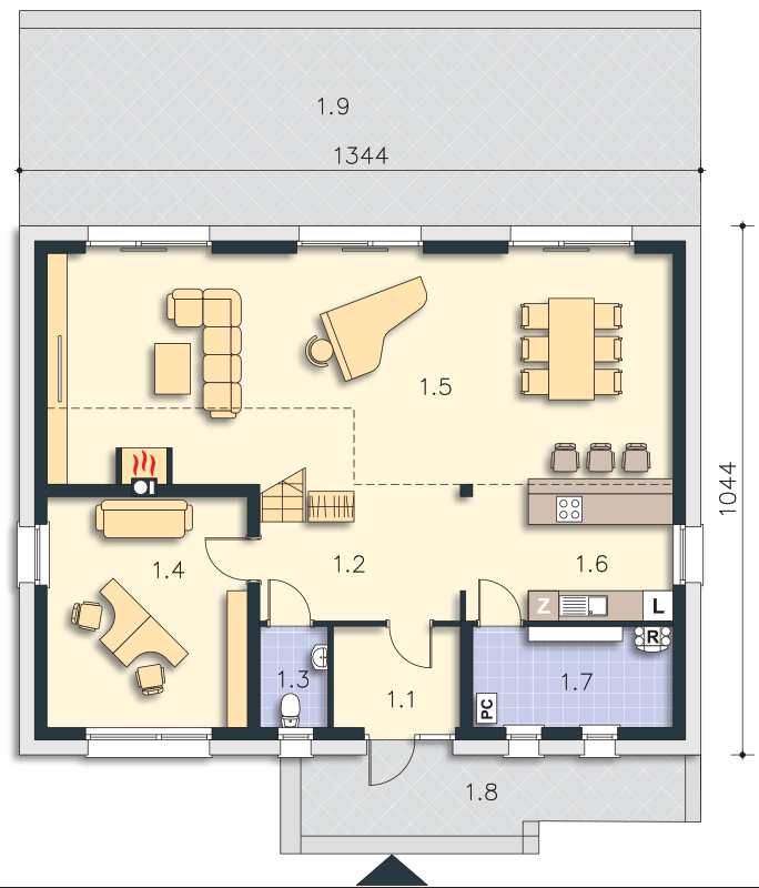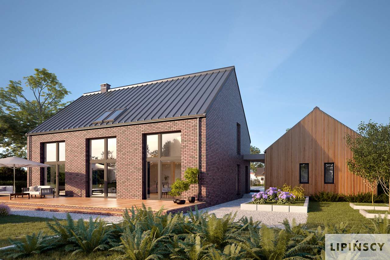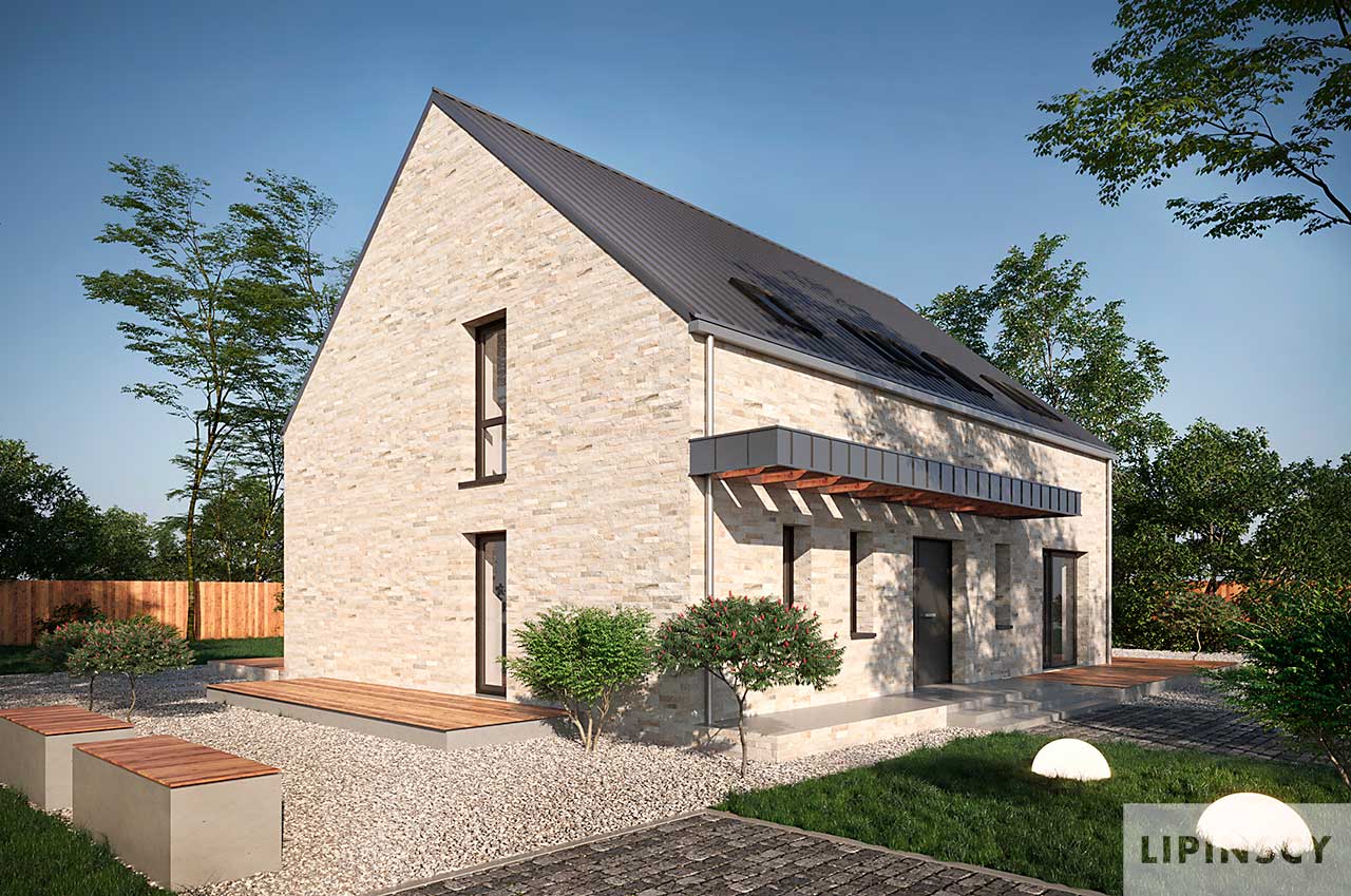 Nie posiadamy wersji projektu bez garażu, ale w ramach adaptacji można z niego zrezygnować. Sam dom ma 13,5 m szerokości więc minimalne wymiary działki zakładając, że musimy odsunąć się po 4 m po bokach, z przodu 5 m (ta odległość zależy jednak od zapisów w warunkach zabudowy), musiałaby mieć 21,5 m na 21 m.