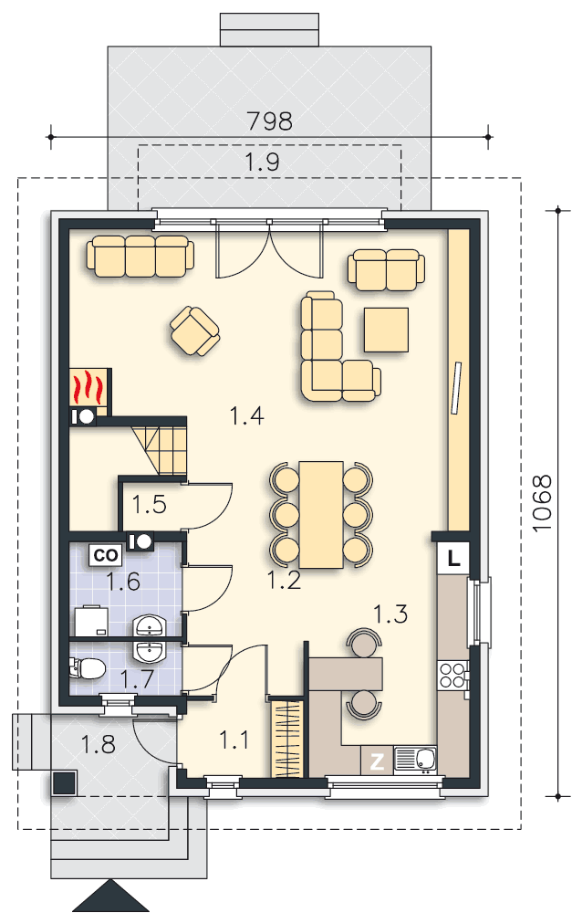 - czy możemy wejście do domu umieścić frontalnie, tym samym zadaszony teren przed wejściem powiększył by część mieszkalną (co pomogło by chyba w wygospodarowaniu dodatkowego pokoju),