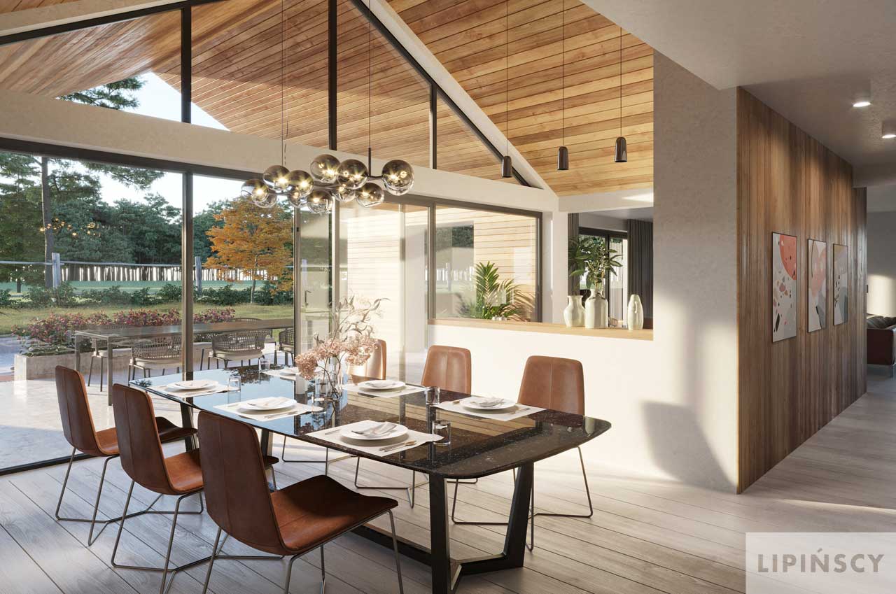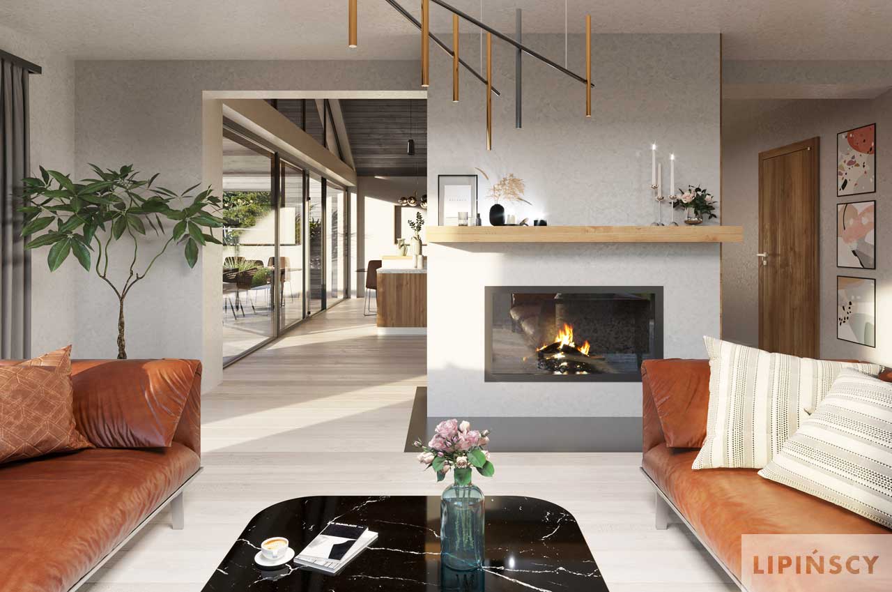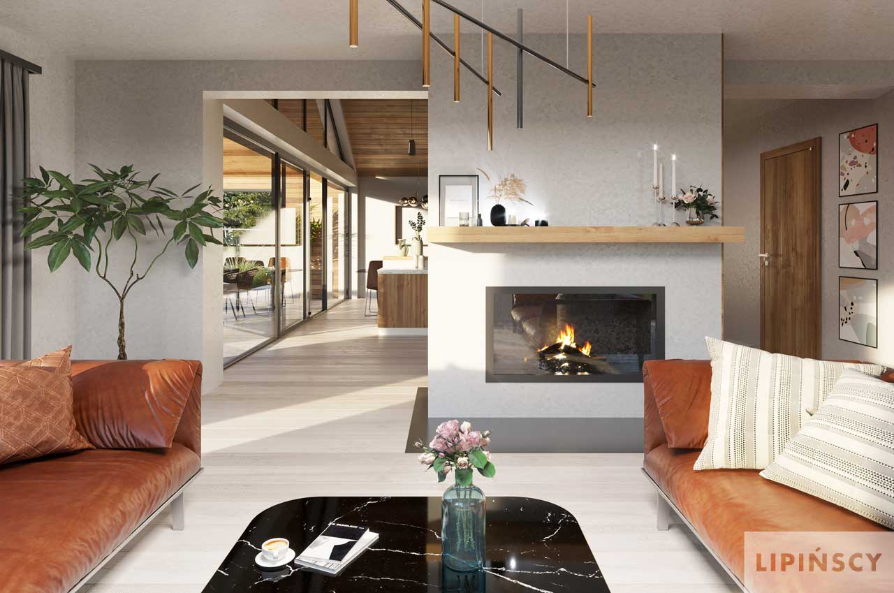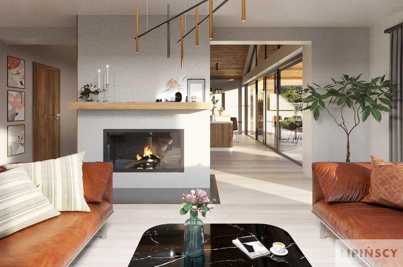 W opisie projektu mamy informację, ze salon z kominkiem jest wysoki, natomiast w wizualizacji wnętrz jest normalny sufit. W jakich pomieszczeniach zatem jest planowany otwarty strop ?