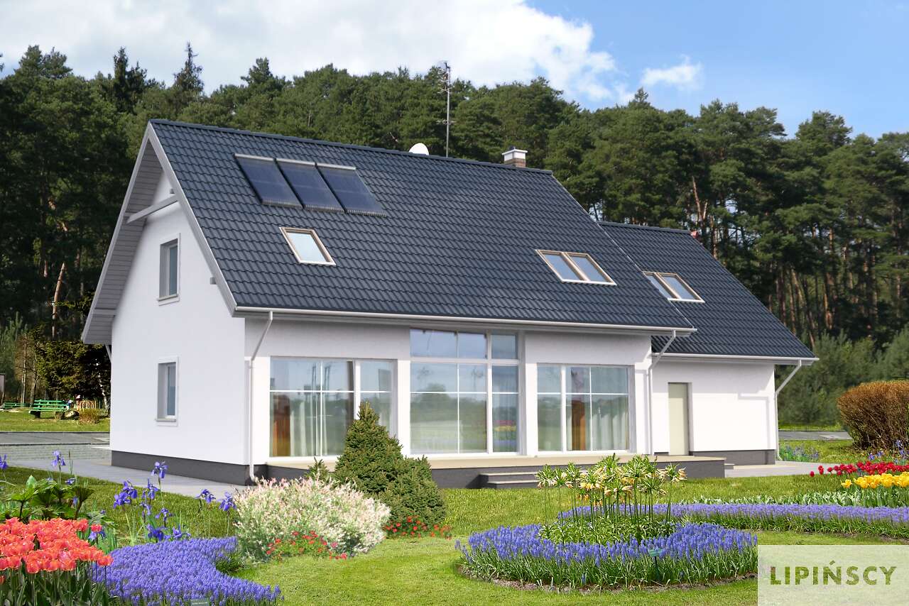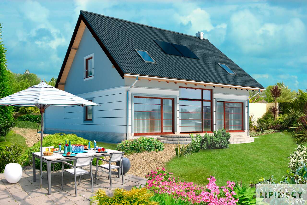 To bardzo ładny i funkcjonalny domek. Ma tradycyjny wygląd i dobrze dobrane proporcje. Przewiduje stosowanie wielu rozwiązań energooszczędnych. Salon z antresolą sprawia, wrażenie dużej powierzchni.