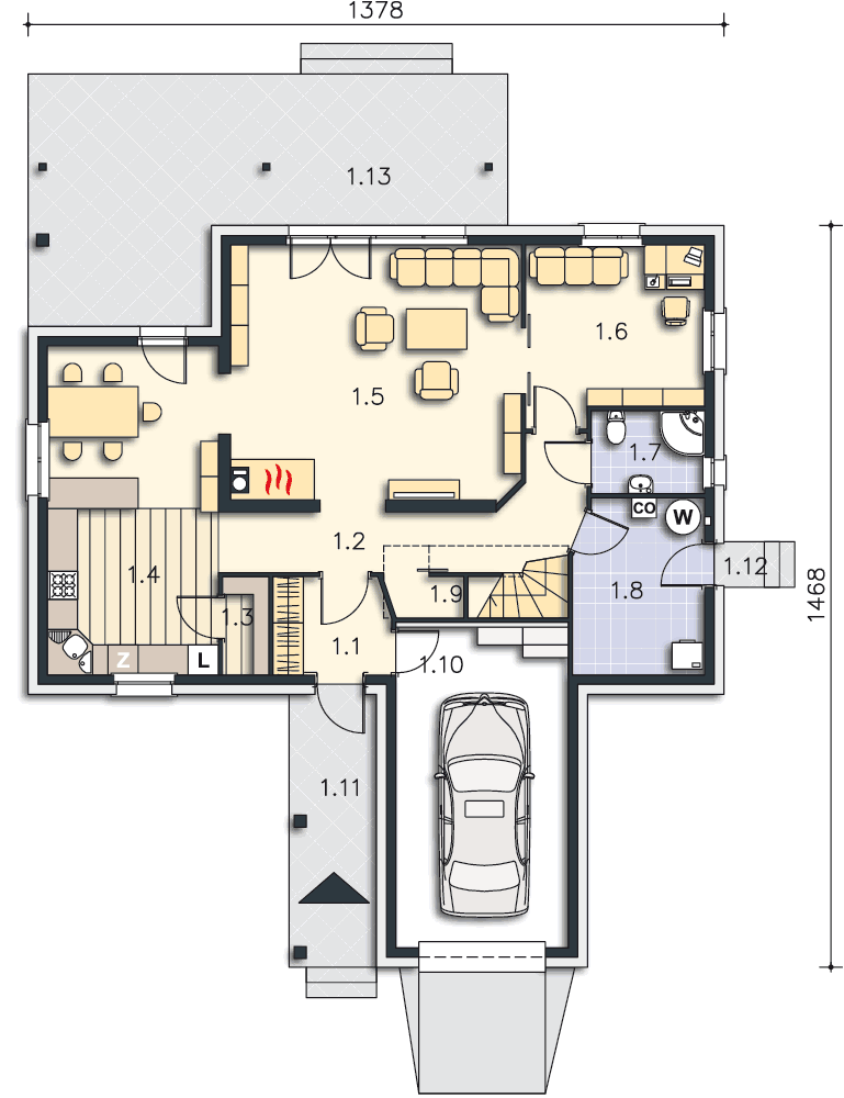 Przewidziano tam strych z wejściem z garażu, przez schody składane.