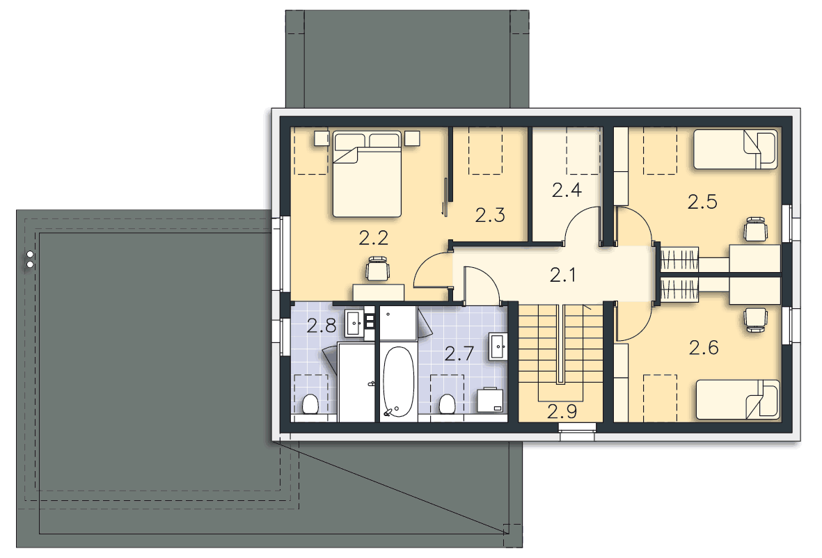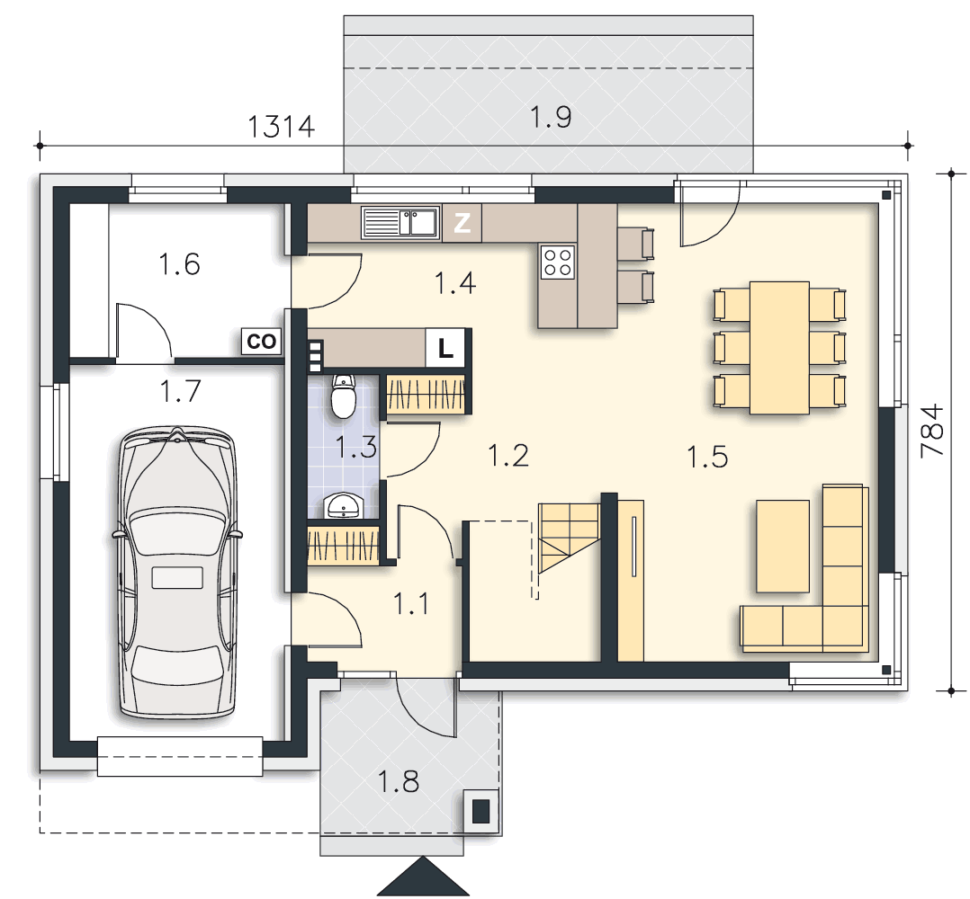WC z prysznicem nie zmieści się pod schodami. Trzeba będzie je zlokalizować gdzieś obok wiatrołapu i kotłowni.