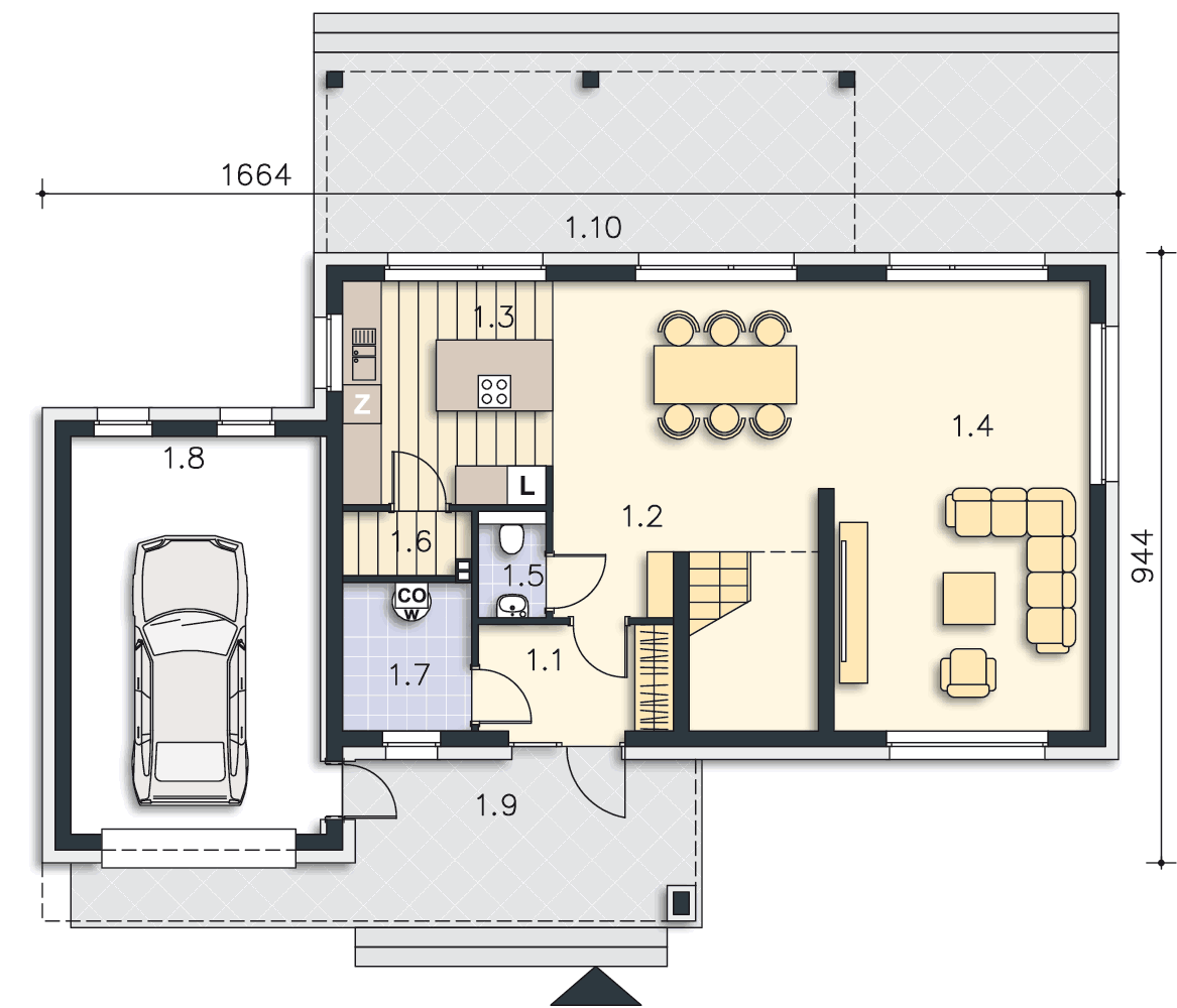 WC z prysznicem nie zmieści się pod schodami. Trzeba będzie je zlokalizować gdzieś obok wiatrołapu i kotłowni.