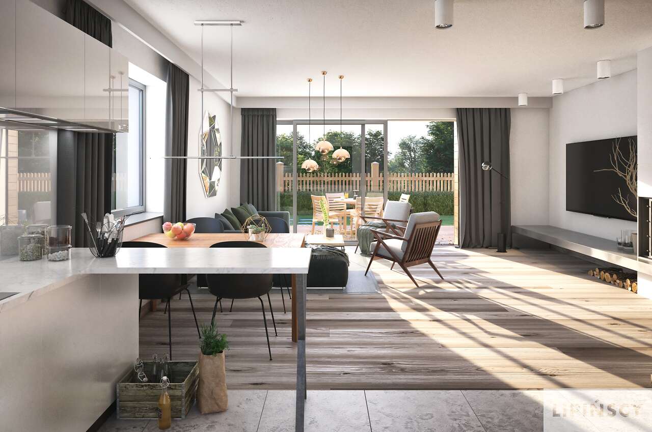 4. Czy można by przenieść taras na stronę kuchni/jadalni, tzn. pomniejszyć wówczas okna z tyłu budynku, robiąc wyjście na taras przy stole znajdującym się przy kuchni?