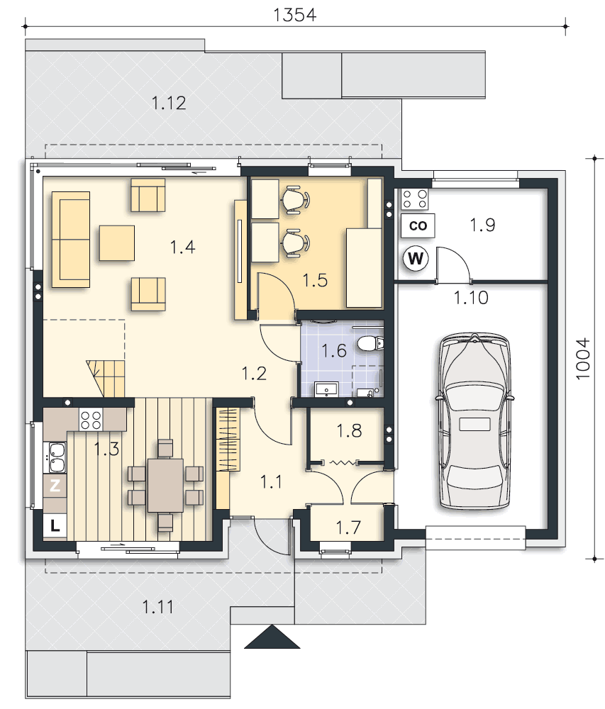 Chcialabym miec tylko ten domek parterowy bez poddasza. Czy jest taka mozliwosc?. Po zlikwidowaniu okna w salonie po prawej stronie w miejsce 1.12(pralni) jednostanowiskowy garaz. Dziekuje za odpowiedz.