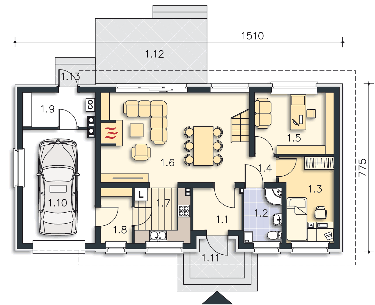 Czy istnieje możliwość zrobienia wejścia do domu obok garażu (w miejscu pom. gosp. 1.8) i tym samym przesunięcia kuchni trochę w prawo? Technicznie wydaje się, że to nie będzie problem, zastanawiam się tylko nad elewacją, daszek byłby wtedy z boku. Czy mogłoby tak być? Bardzo pozytywnie wpłynęłoby to na funkcjonalność domu, a kuchnia bliżej jadalni też by zyskała (zrezygnowałabym z pom. gospodarczego w celu powiększenia kuchni).