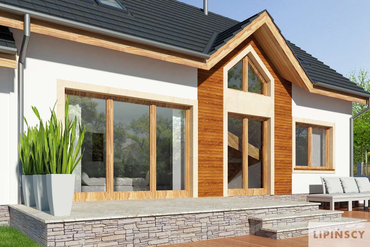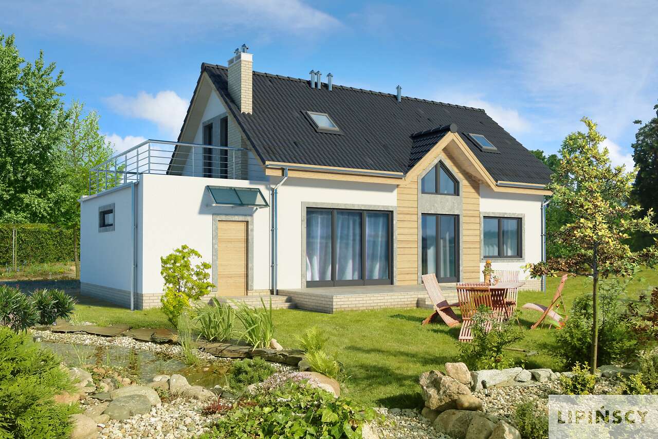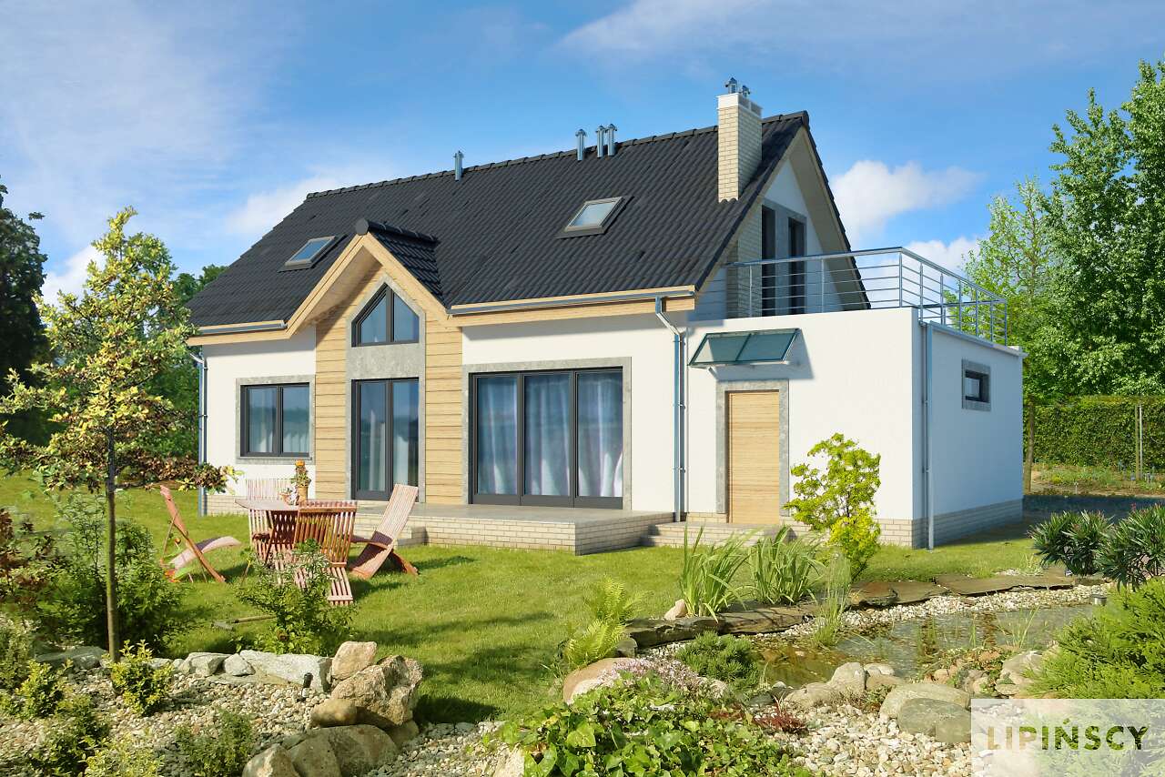 Projekt zawiera funkcjonalny rozkład pomieszczeń, taras nad garażem oraz prostą, tradycyjną stylizację domu jednorodzinnego, co przyczyniło się do podjęcia decyzji o zakupie projektu. Jednym z największych plusów projektu jest wymieniony powyżej taras nad garażem oraz spora ilość pomieszczeń w domu. Dodatkowym atutem jest bardzo dobrze oświetlony salon poprzez duże