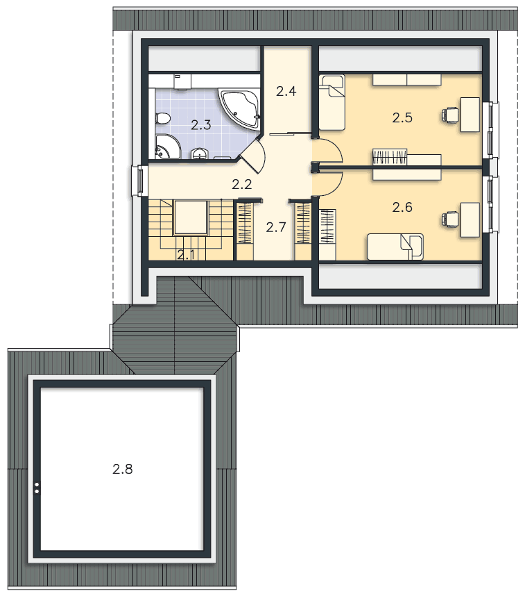 Czy byłoby możliwe doprojektowanie pokoju pełniącego funkcję ogrodu zimowego od strony wschodniej, wejście przez drzwi przesuwane z dużego pokoju. Pomieszczenie w założeniu nieogrzewane, dogrzewane okresowo kominkiem - komin dobudowany po ścianie zewnętrznej elewacji wschodniej. W dobudowie przeszkadzają okna górnych sypialni.