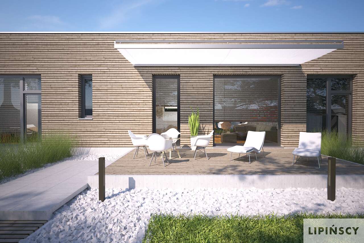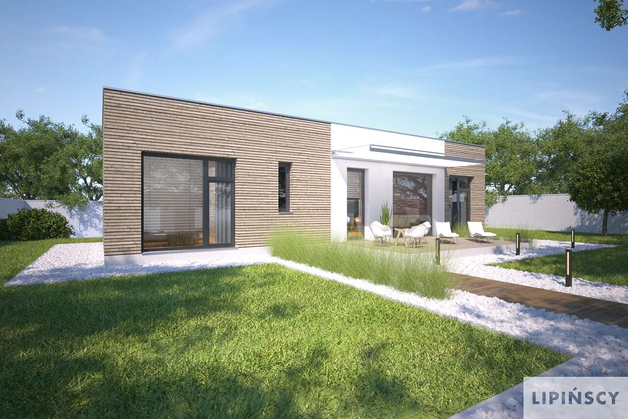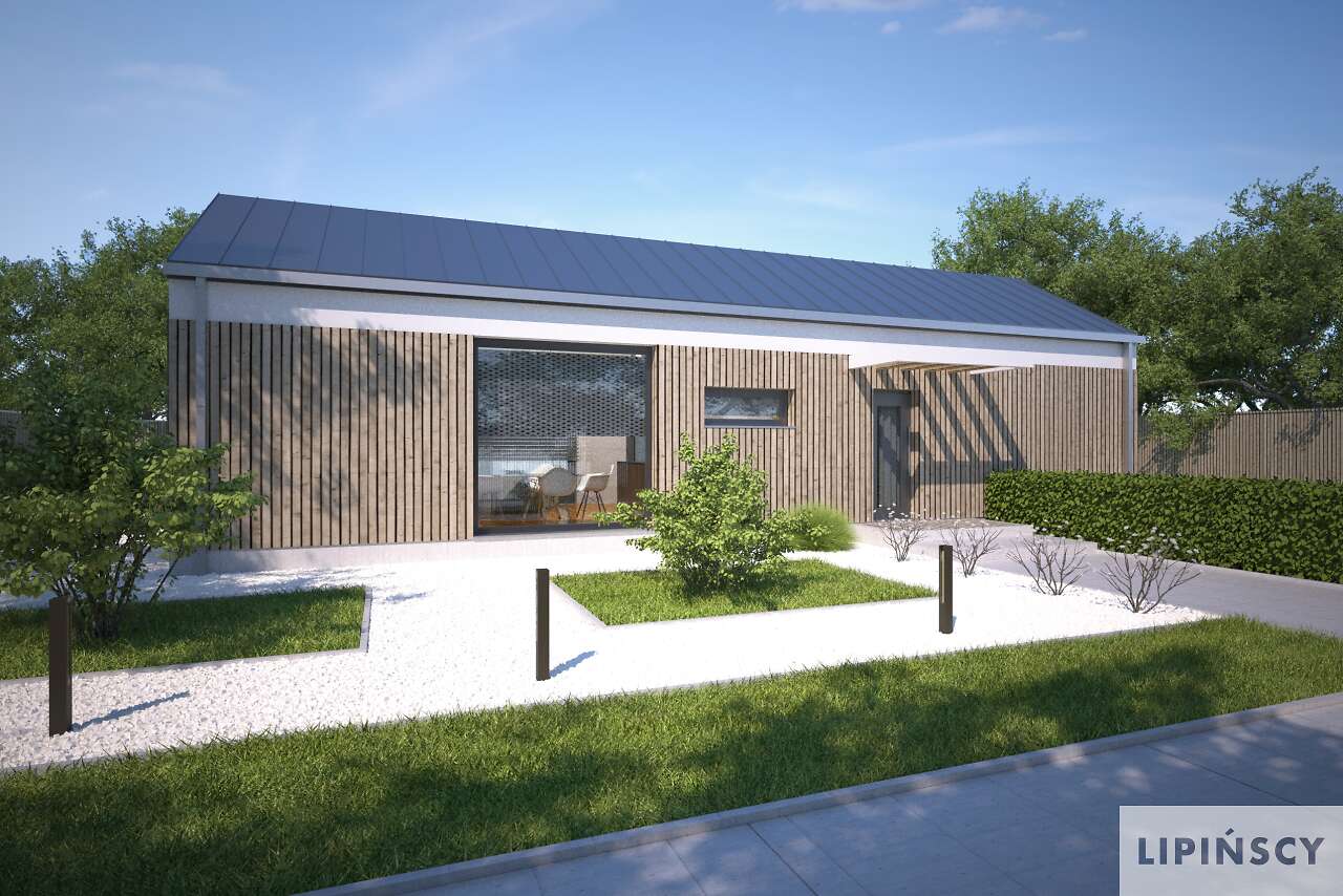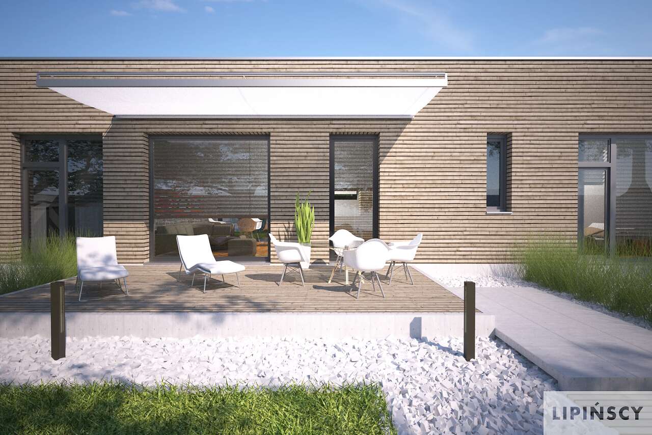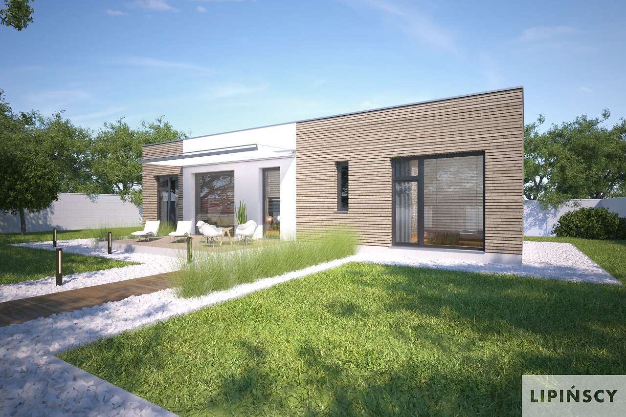 Duże przeszklenia po lewej stronie powinny znaleźć się od strony południowo-zachodniej, ale generalnie jest duża swoboda usytuowania. Można również zamówić lustrzane odbicie.