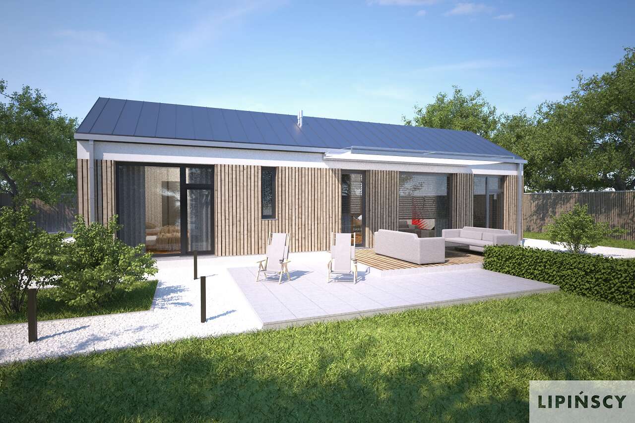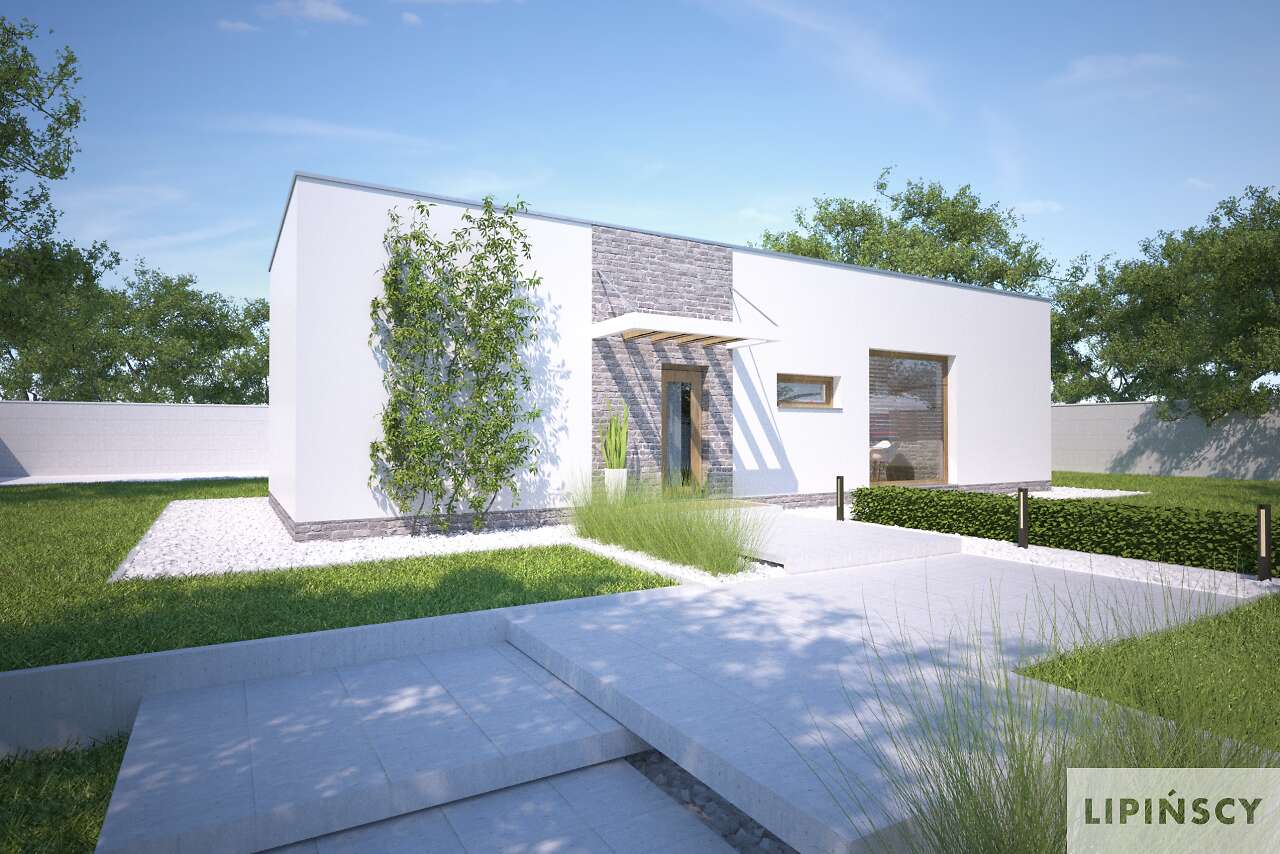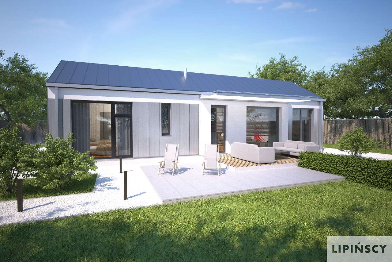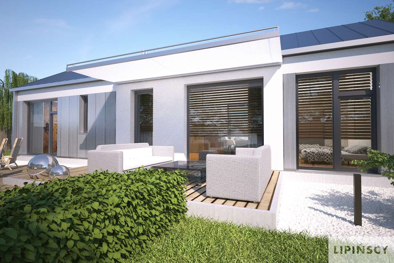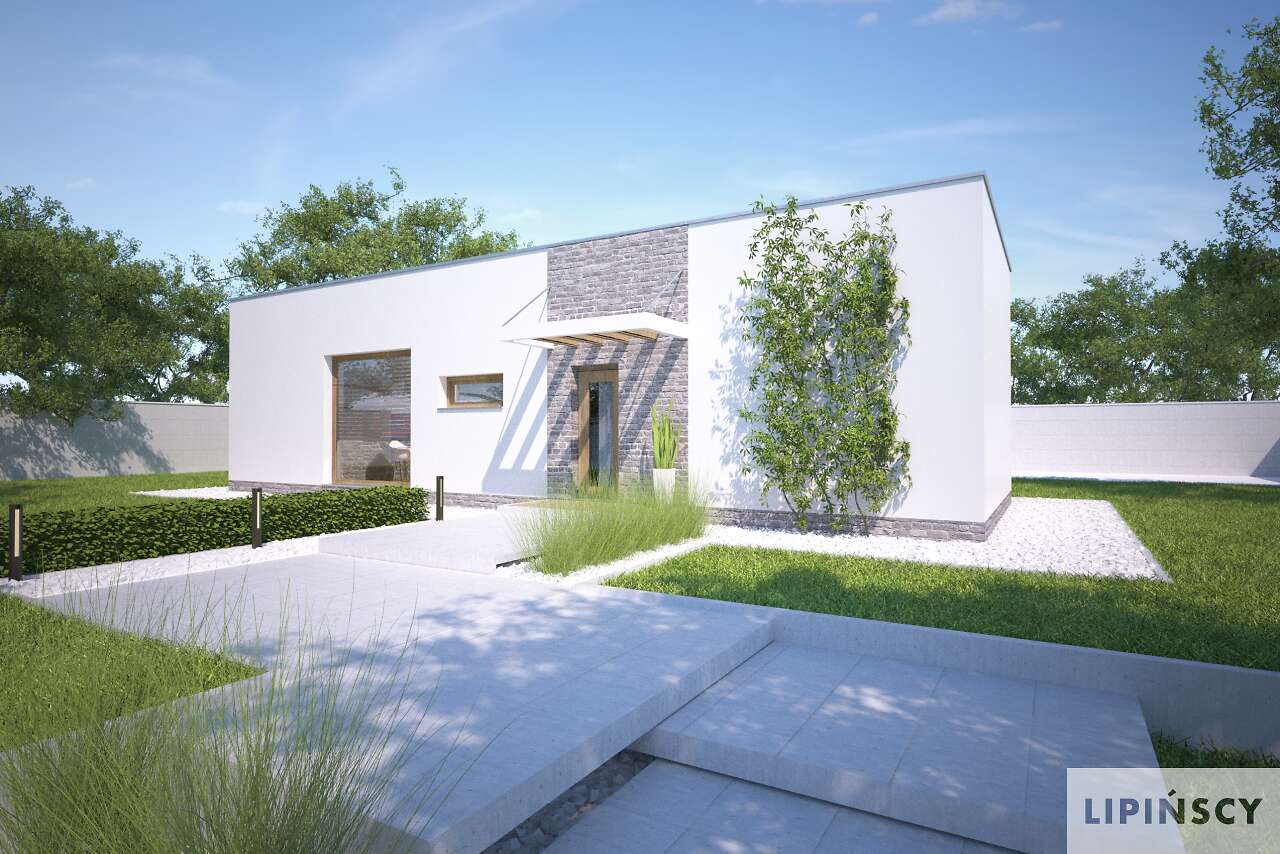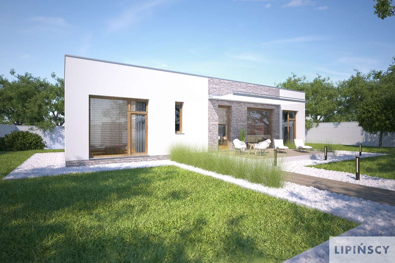 Duże przeszklenia po lewej stronie powinny znaleźć się od strony południowo-zachodniej, ale generalnie jest duża swoboda usytuowania. Można również zamówić lustrzane odbicie.
