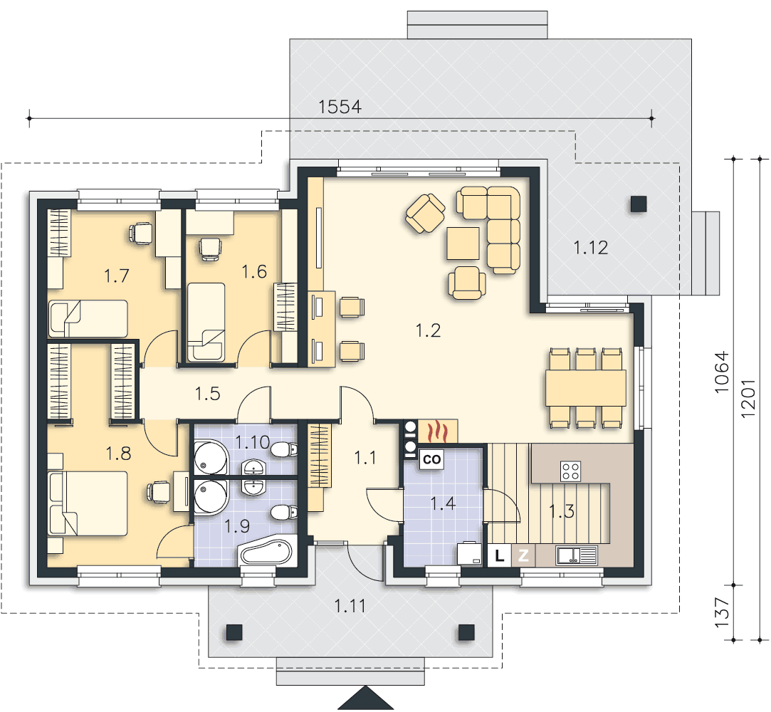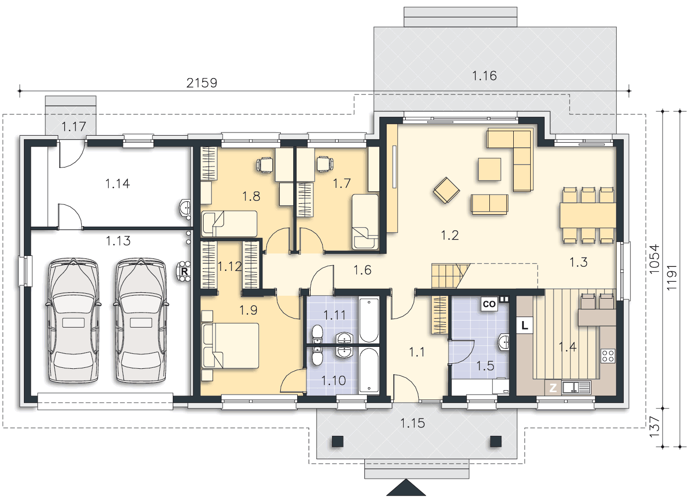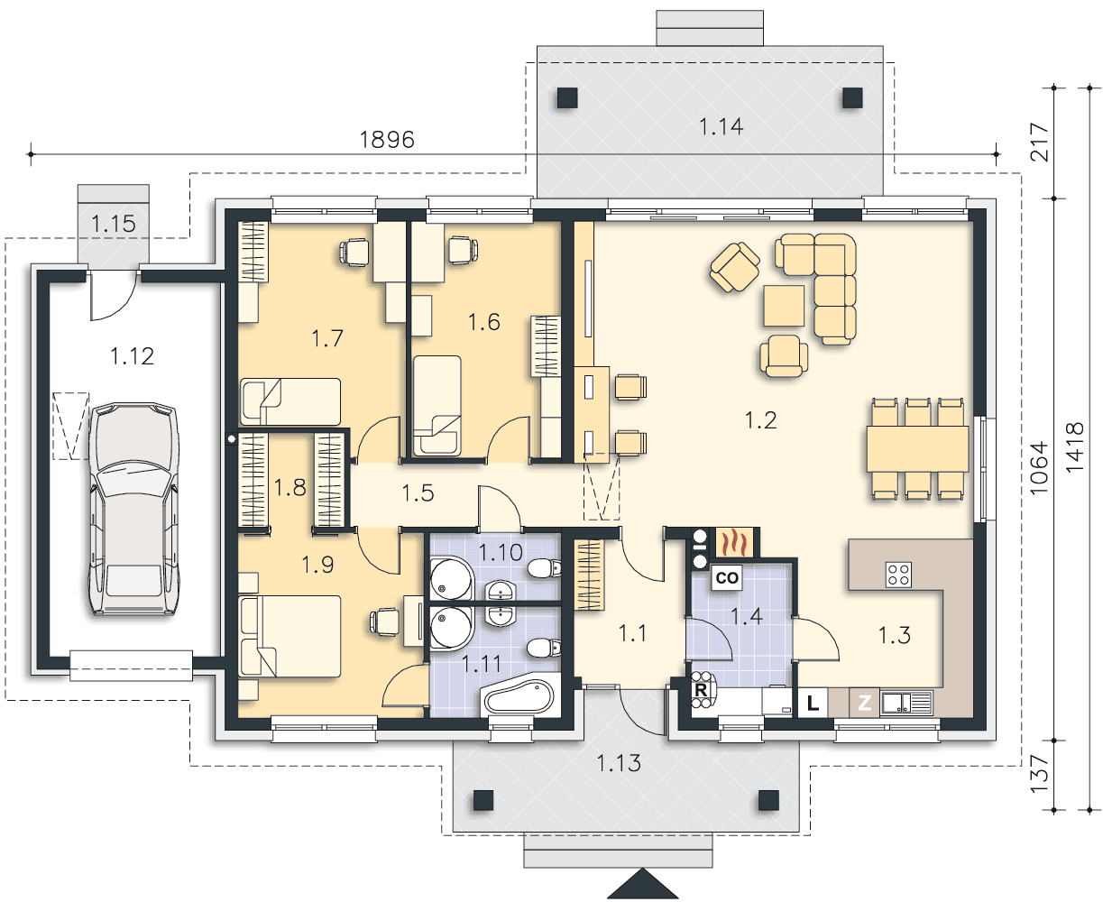 Czy można poszerzyć dom dodając po 1 metrze z obu stron .Przesunięta w ten sposób kuchnia z jadalnią pozwoli na powiększenie pomieszczenia gospodarczego.A z drugiej strony dodany 1 metr spowoduje powiększenie sypialni.Czy powiększony w ten sposób dom nie straci proporcji?