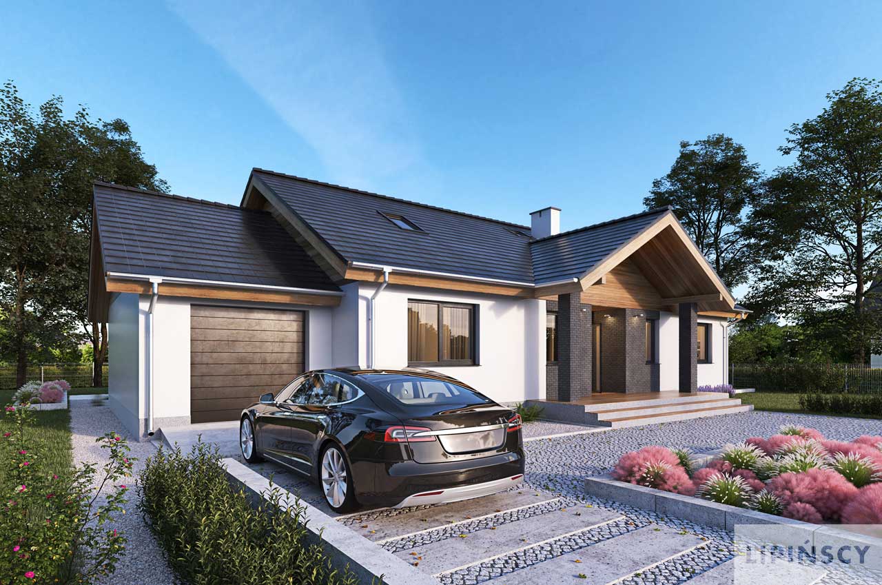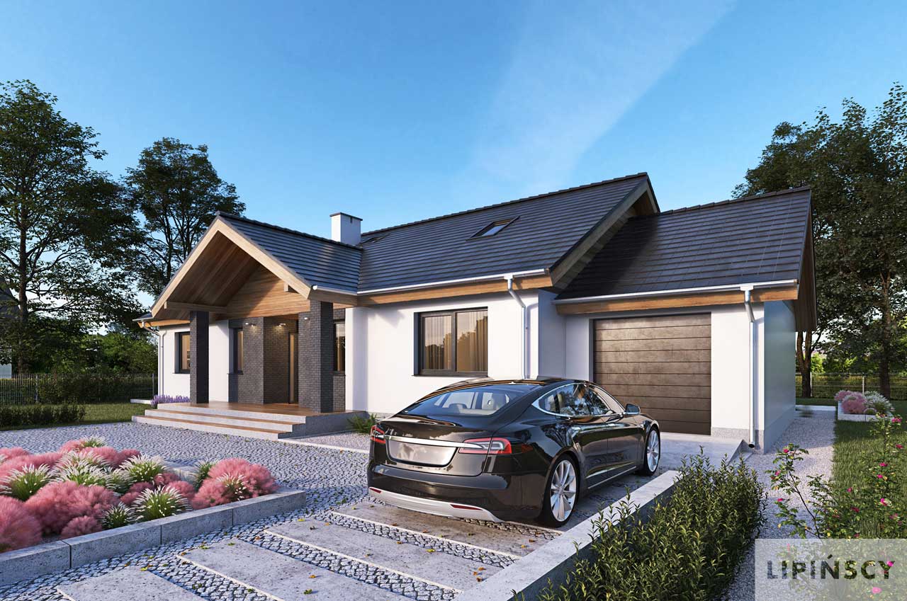 Wersję z garażem możemy przygotować na zamówienie. Wówczas kotłownia zostanie zaprojektowana wg wytycznych inwestora. Co do adaptacji strychu i schodów również trzeba uzgodnić szczegóły - zapraszamy do kontaktu bezpośredniego: biuro@lipinscy.pl