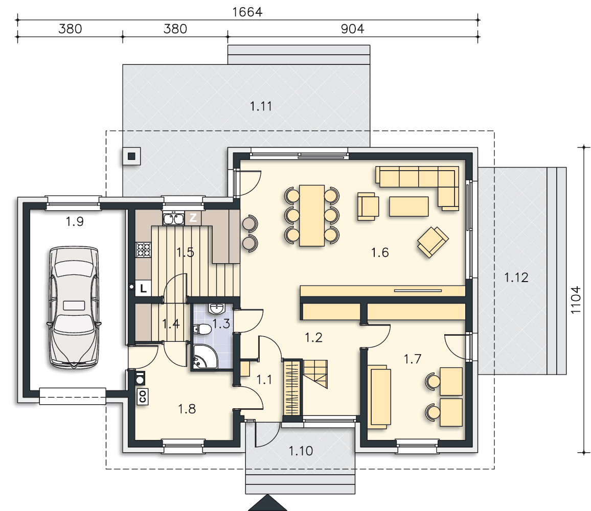 Na działkę z wjazdem od wschodu idealnie pasuje wersja lustrzane odbicie.
