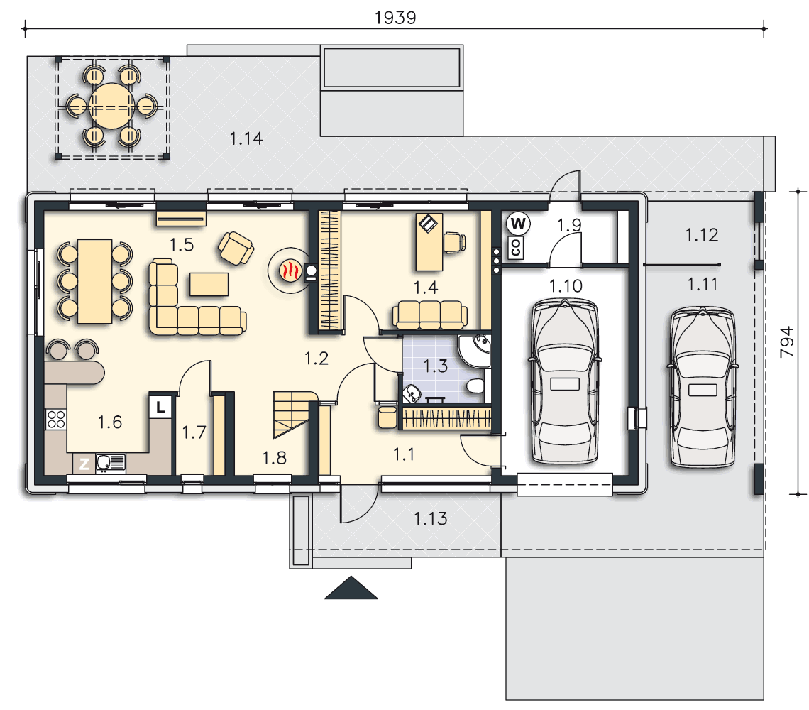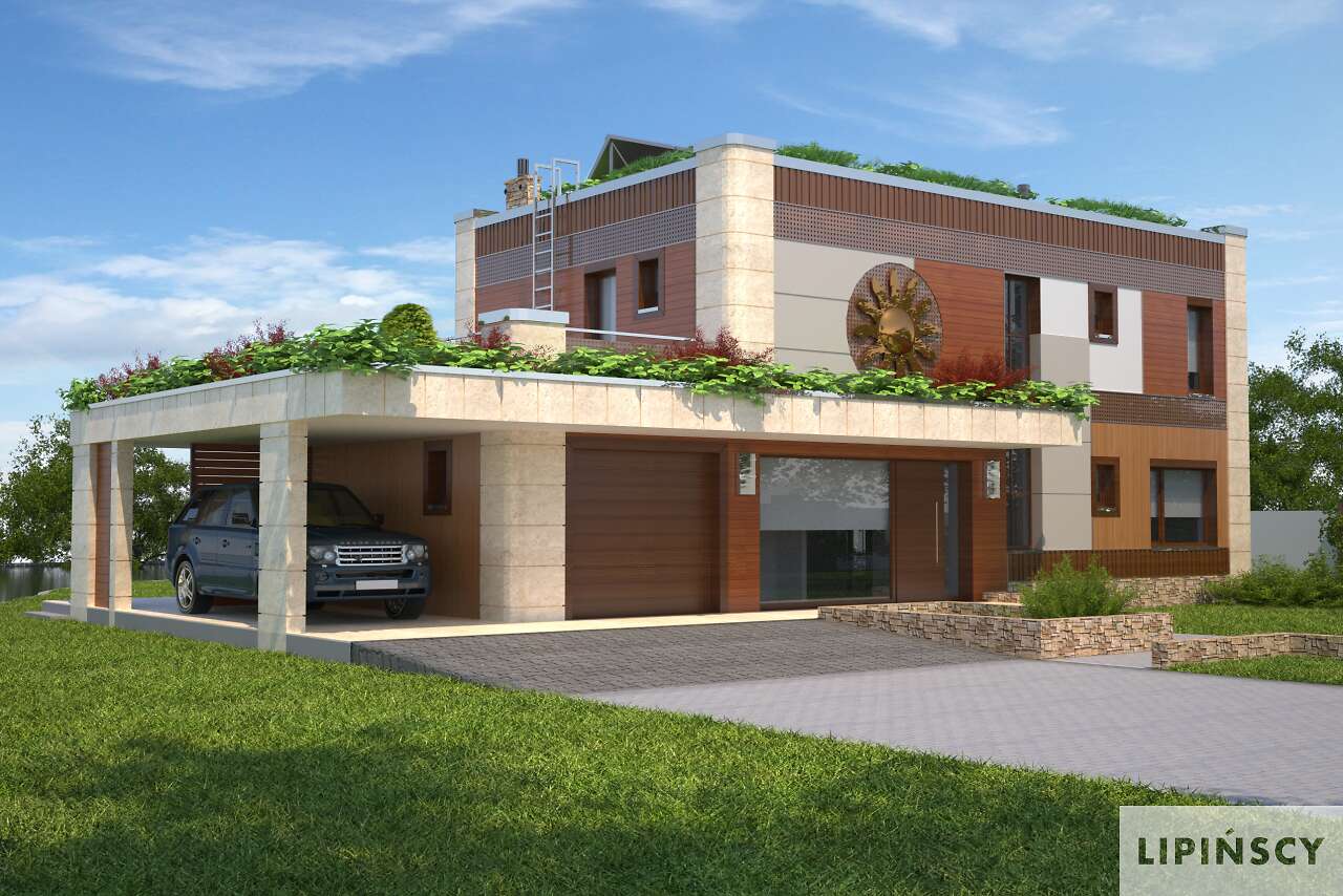Można dostosować projekt do takich wymagań. Podobne rozwiązanie ma wersja podstawowa tego projektu, czyli Santos DCP308, tylko drugie stanowisko garażowe jest w postaci wiaty, a zamiast ogrodu zimowego i tarasu jest taras i zielony dach. W sprawie ustalenia szczegółów prosimy o kontakt z biurem.
