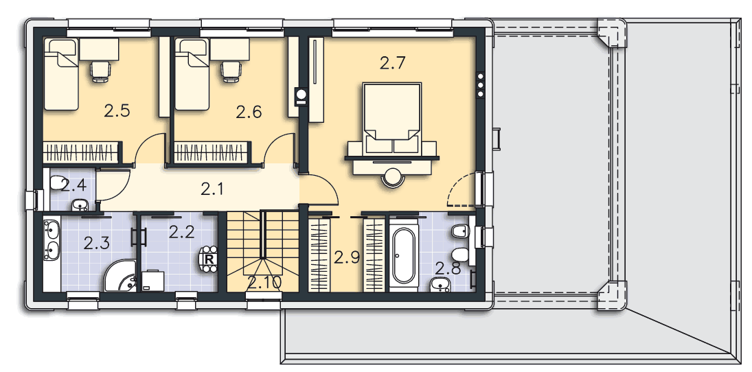 Czy jest możliwość zmiany dachu na skosny z min 30 stopni? Oraz zmiany pomieszczeń 2.7, 2.8 i 2.9 na dwie sypialnie?