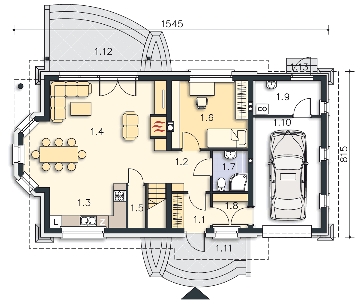 Niewielki domek z bardzo dobrze rozplanowanymi pomieszczeniami, pokój na parterze-sypialnia , a jednocześnie oddzielone od pozostałej części, w projekcie jest garaż i kotłownia, i wygląda całość super.