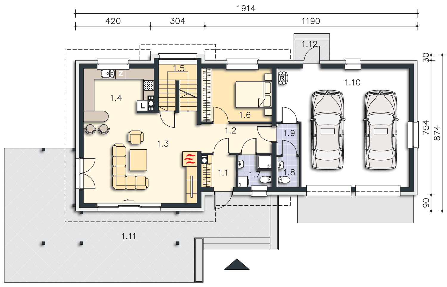 Projekt bardzo mi się podoba. Prostota i elegancja. Gdyby tylko można było zadaszyć taras nad garażem. Zyskało by się dodatkowe pomieszczenie na poddaszu.