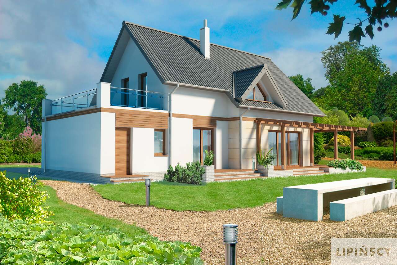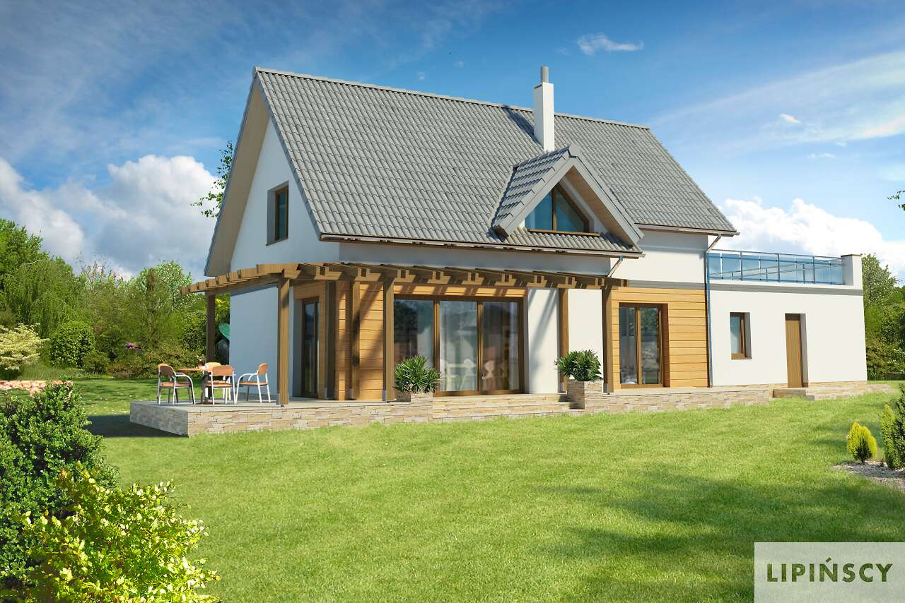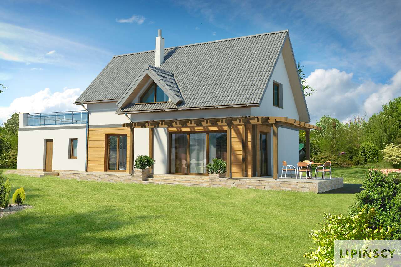 Super projekt. Uwielbiam domy z dużymi oknami - pozwala to na oszczędność energi. Jedyne co bym zmieniła w projekcie to przejście z garażu przez kotłownię do domu oraz powiększyłabym troszeczkę łazienkę na poddaszu kosztem garderoby. Bardzo podoba mi się opcja dużego tarasu nad garażem.