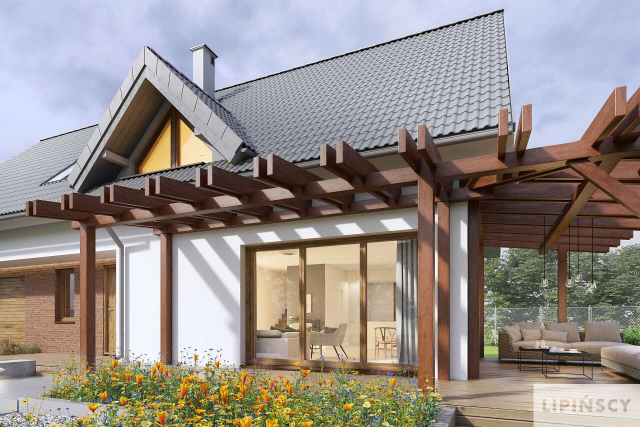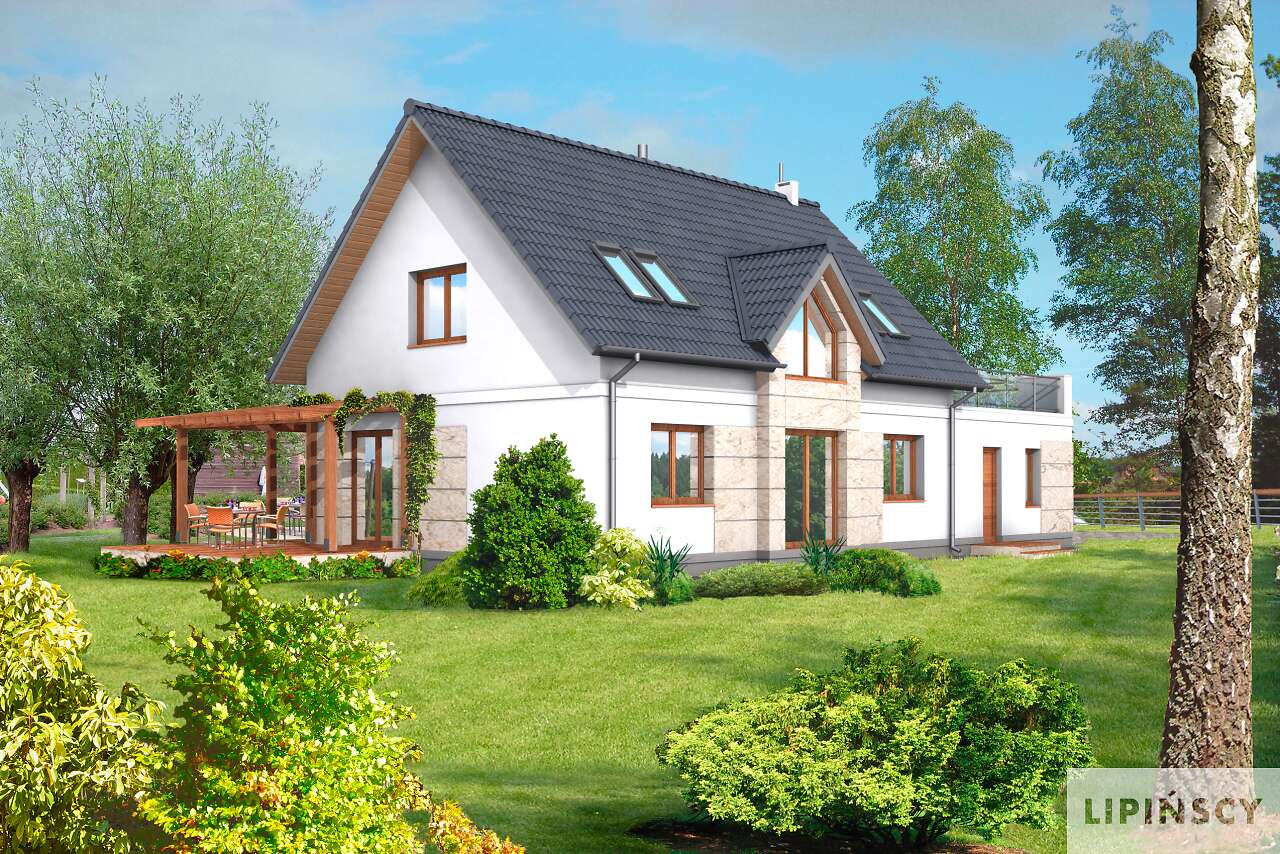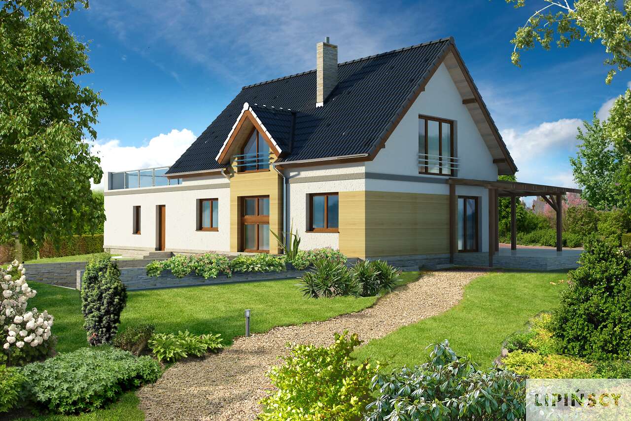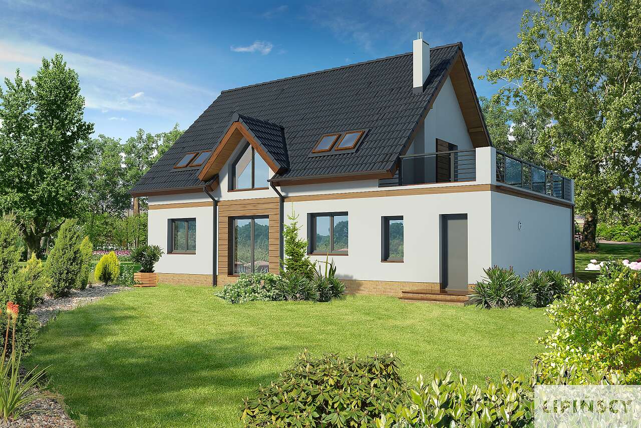 Super projekt. Uwielbiam domy z dużymi oknami - pozwala to na oszczędność energi. Jedyne co bym zmieniła w projekcie to przejście z garażu przez kotłownię do domu oraz powiększyłabym troszeczkę łazienkę na poddaszu kosztem garderoby. Bardzo podoba mi się opcja dużego tarasu nad garażem.