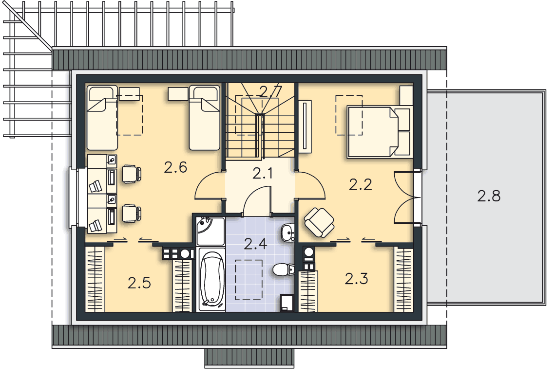 Czy byłaby możliwość zagospodarowania użytkowego poddasza tak aby zmieściły się tam 3 sypialnie?