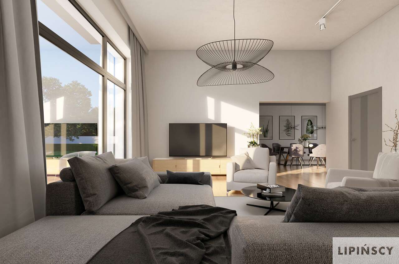Duże przeszklenia sugerujemy aluminiowe. Projekt jest w trakcie opracowania.