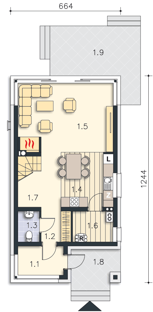Tak, można doprojektować podpiwniczenie. Schody umieszczone są w taki sposób, że pod nimi byłoby zejście do piwnicy. Zmianę taką może nanieść na projekt każdy uprawniony projektant lub nasze biuro. Podobnie, jak wyżej, prosimy wtedy o kontakt mailowy.